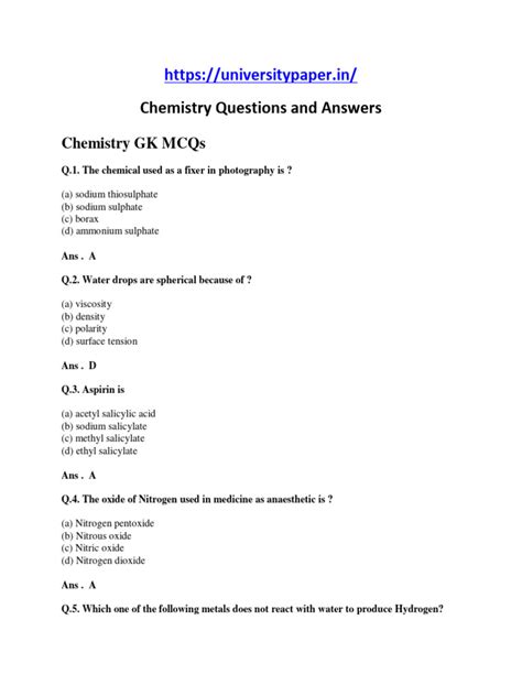 Read Simple Chemistry Questions And Answers Reader